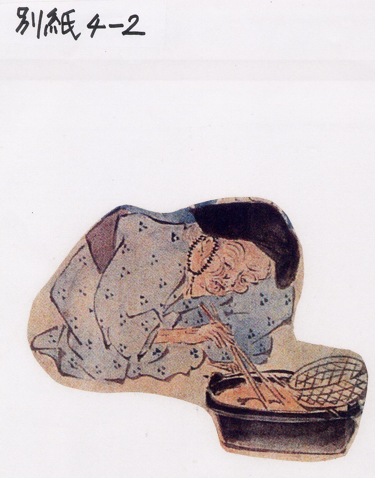 | 別紙1〜4 | 1:原画全体(フルカラー)vs原告絵画全体(透明フィルム) 2:主人(原画:フルカラーvs原告絵画:透明フィルム) 3:女房(原画:フルカラーvs原告絵画:透明フィルム) 4:老婆(原画:フルカラーvs原告絵画:透明フィルム) |