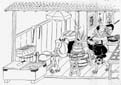 本件原画1(主人と番頭の部分)を重ね合せたもの本文20頁参照 別紙5 原告絵画1の透明フィルム(小僧の部分)と本件原画